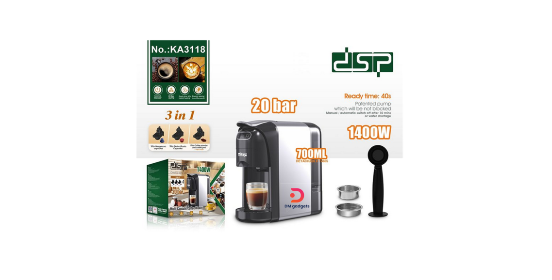 Μηχανή καφέ Espresso της DSP 2 σε 1 για κάψουλες και αλεσμένο καφέ, υψηλής ποιότητας κατασκευής και απόδοσης, ιδανική για επαγγελματικό καφέ espresso στο σπίτι σας.