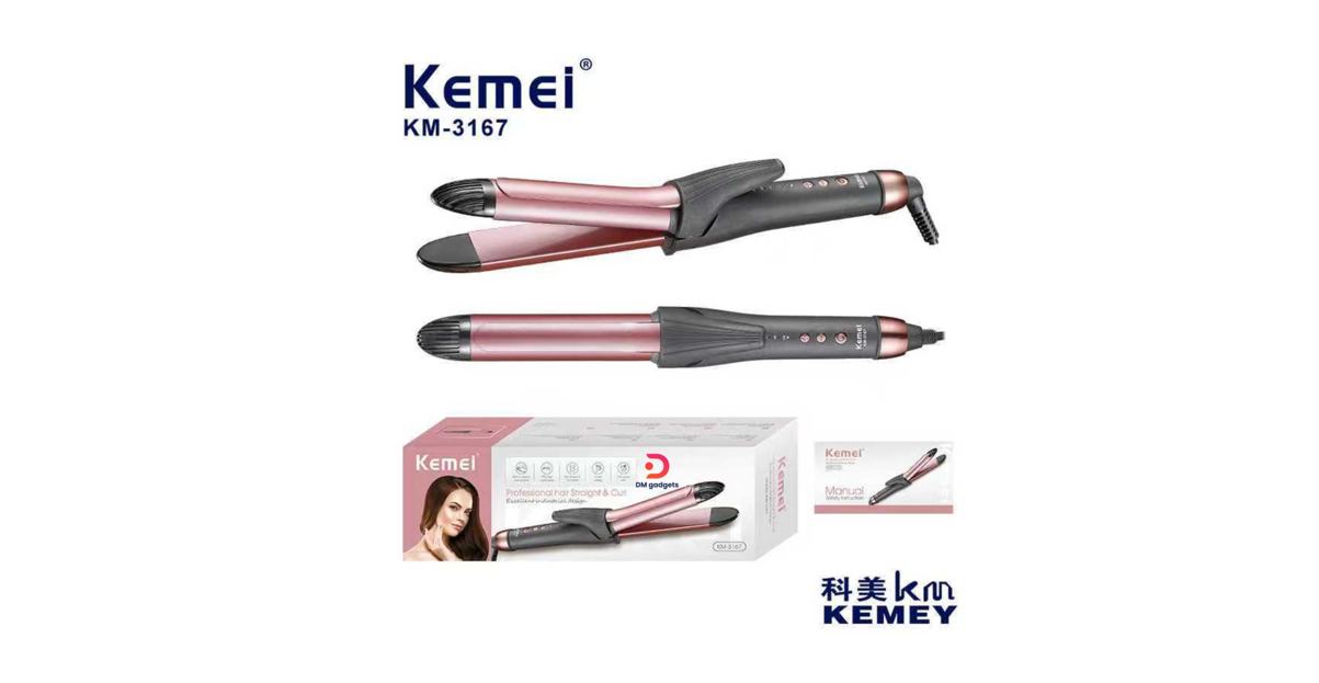 Kemei®KM-3167 Professional Hair Straightener + Curler – 2-in-1