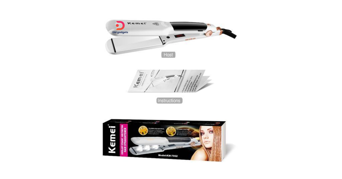 Kemei®KM-7062 Professional Hair Straightener Tourmaline Technology White-Black