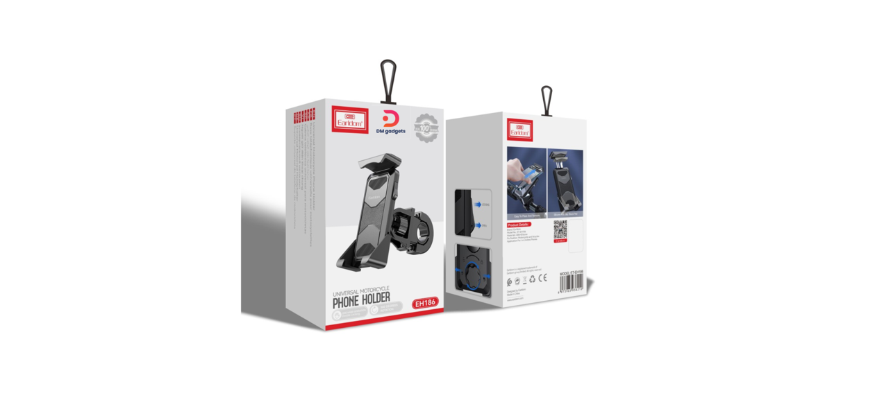 The Earldom ET-EH186 holder fits most smartphones and ensures safe use while driving. Its special design securely holds your smartphone in place, and it features a mechanical locking mechanism via a button located on the end of the holder. This universal model fits most mobile devices between 4 and 6 inches. The handlebar mount diameter is 22-35mm. It features 360-degree rotation, easy installation, and optimal visibility.