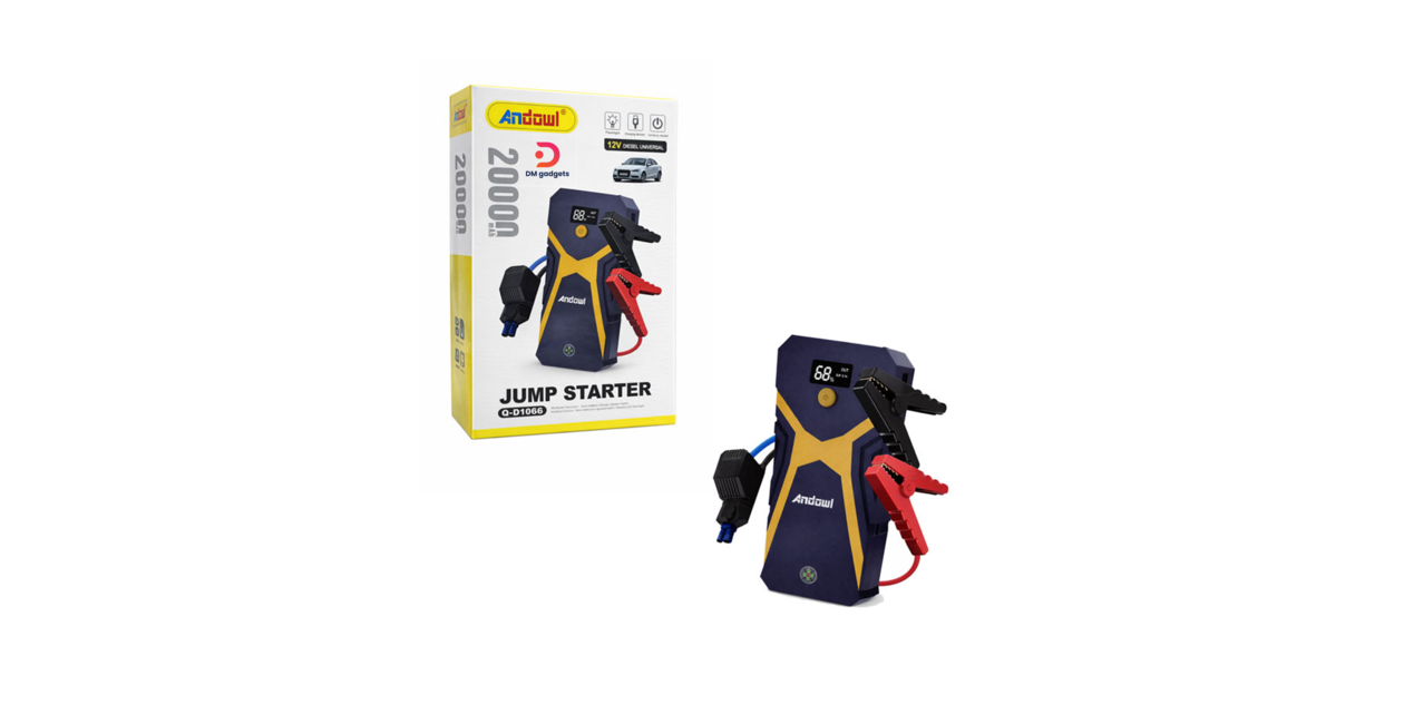 Ο φορητός εκκινητής μπαταρίας Andowl αποτελεί ένα απαραίτητο εργαλείο για κάθε οδηγό, προσφέροντας άμεση εκκίνηση αυτοκινήτου 12V σε περίπτωση άδειας μπαταρίας. Με χωρητικότητα 20000mAh, μπορεί να χρησιμοποιηθεί και ως power bank για φόρτιση κινητών τηλεφώνων και άλλων συσκευών.