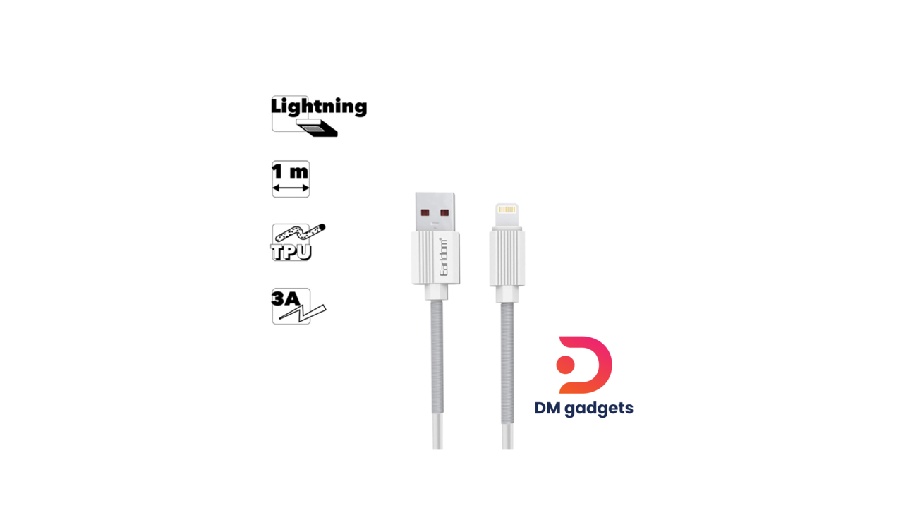 Tag Earldom® USB to Lightning 3A Fast Charging & Data Steel Spring Cable 1M- White