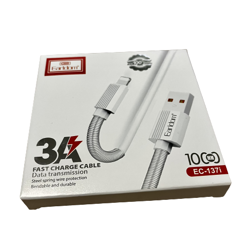 Earldom® USB to Lightning 3A Fast Charging & Data Steel Spring Cable 1M- White