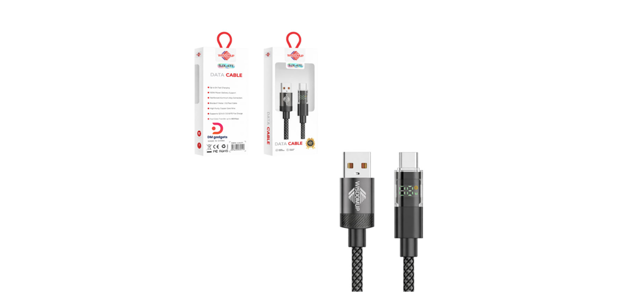 Enhance your charging and data transfer experience with the Wisdomup SJX-47T cable, designed for high performance and durability. It features a built-in LED display that shows charging power in real time, offering full control and updates during use.