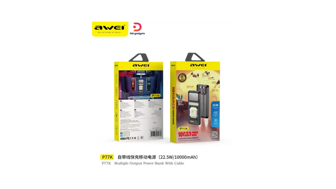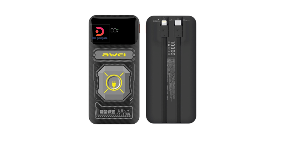 Awei high-capacity 10,000mAh power bank with 22.5W fast charging, impressive design, and practical size for easy transport anywhere.