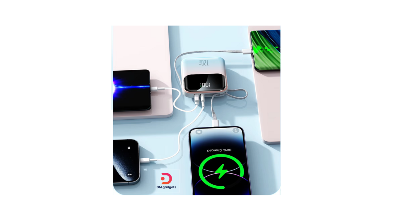 It has 2 built-in Type-C & Lightning charging cables so you don’t have to carry your cable separately.