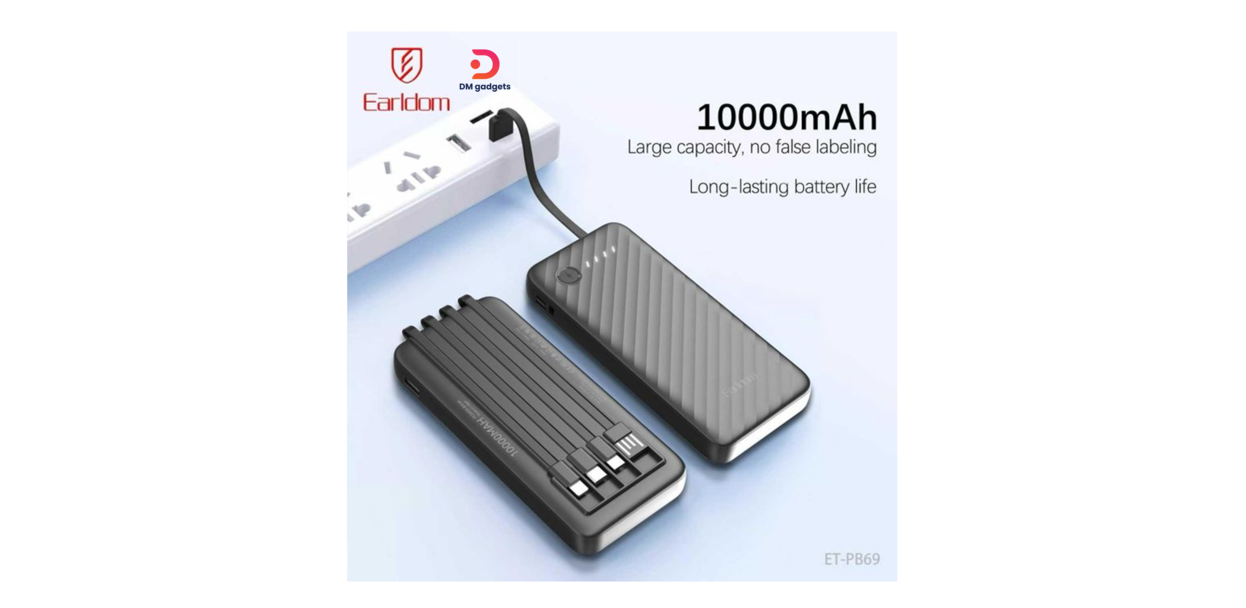 Earldom PB69 4-in-1 Universal Power Bank 10000mAh with Built-in 4 Cables – Fast Charging