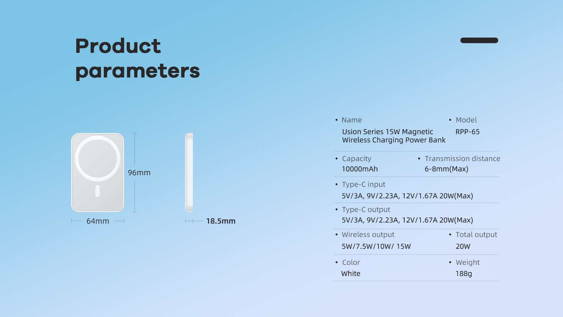 REMAX Usion Series PD 20W Magnetic Wireless Fast Charging Power Bank 10000mAh RPP-65