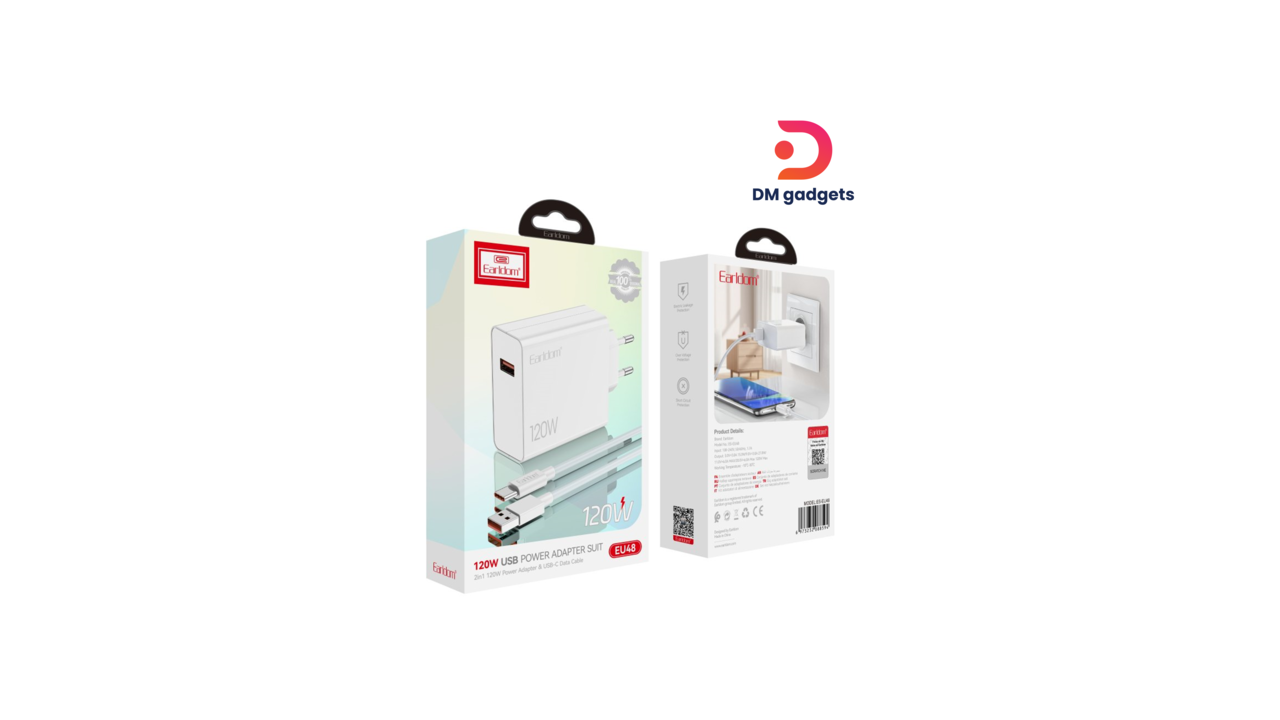 Earldom®EU48 120W USB QC 3.0 Output & USB to Type-C Cable PD Fast Charger – White