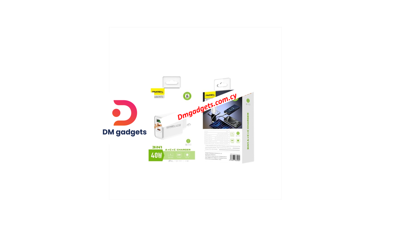 Tag Pavareal®K72 40W EU 3-port charger USB+TYPE-C+TYPE-C PD20W Super Charging Adapter