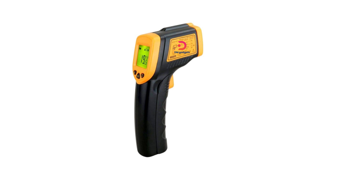 Ανέπαφό θερμόμετρο υπερύθρων χειρός με ψηφιακή φωτιζόμενη οθόνη ενδείξεων και εργονομικό ελαφρύ σχεδιασμό.