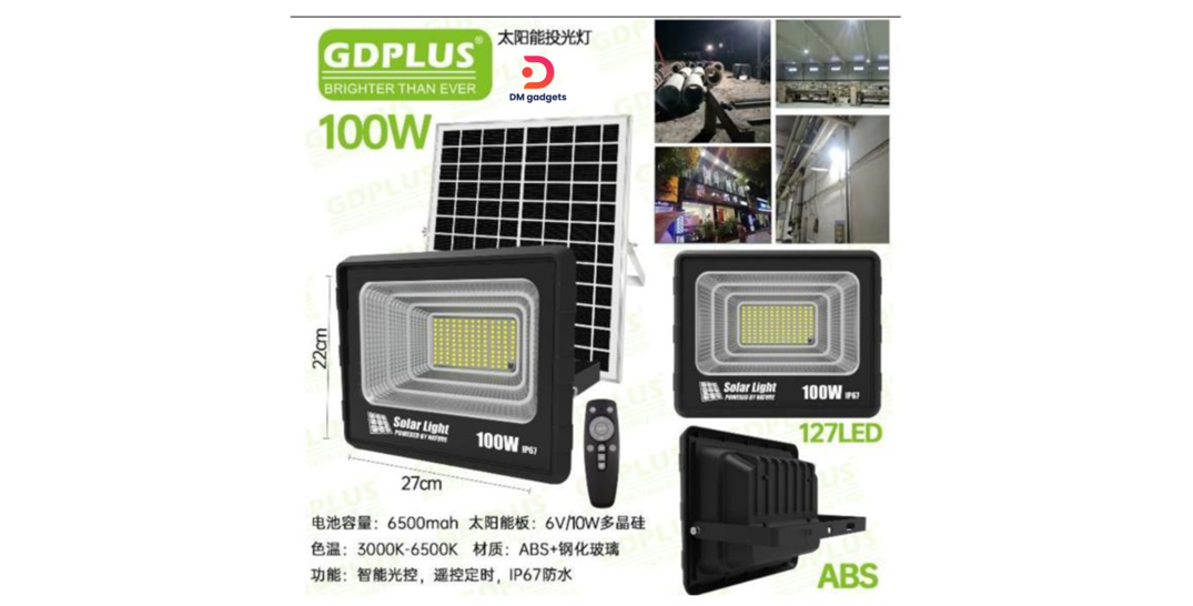 SKU #406G1# GDSUPER GD-100H 100W IP67 LED Solar Spotlight with Remote Control & Timer Categories , Tag