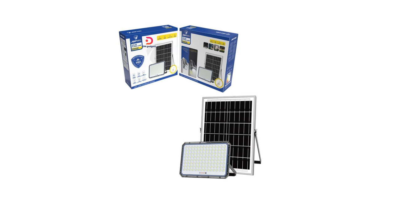 Jortan Solar Floodlight with Remote Control, 3000W LED, IP66 – Solar Flood Lamp