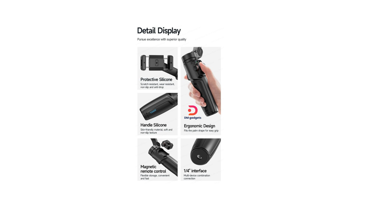 TOQOI®M05 Professional 3-Axis Gimbal Image Stabilizer with magnetic r/control for Smartphones – Black